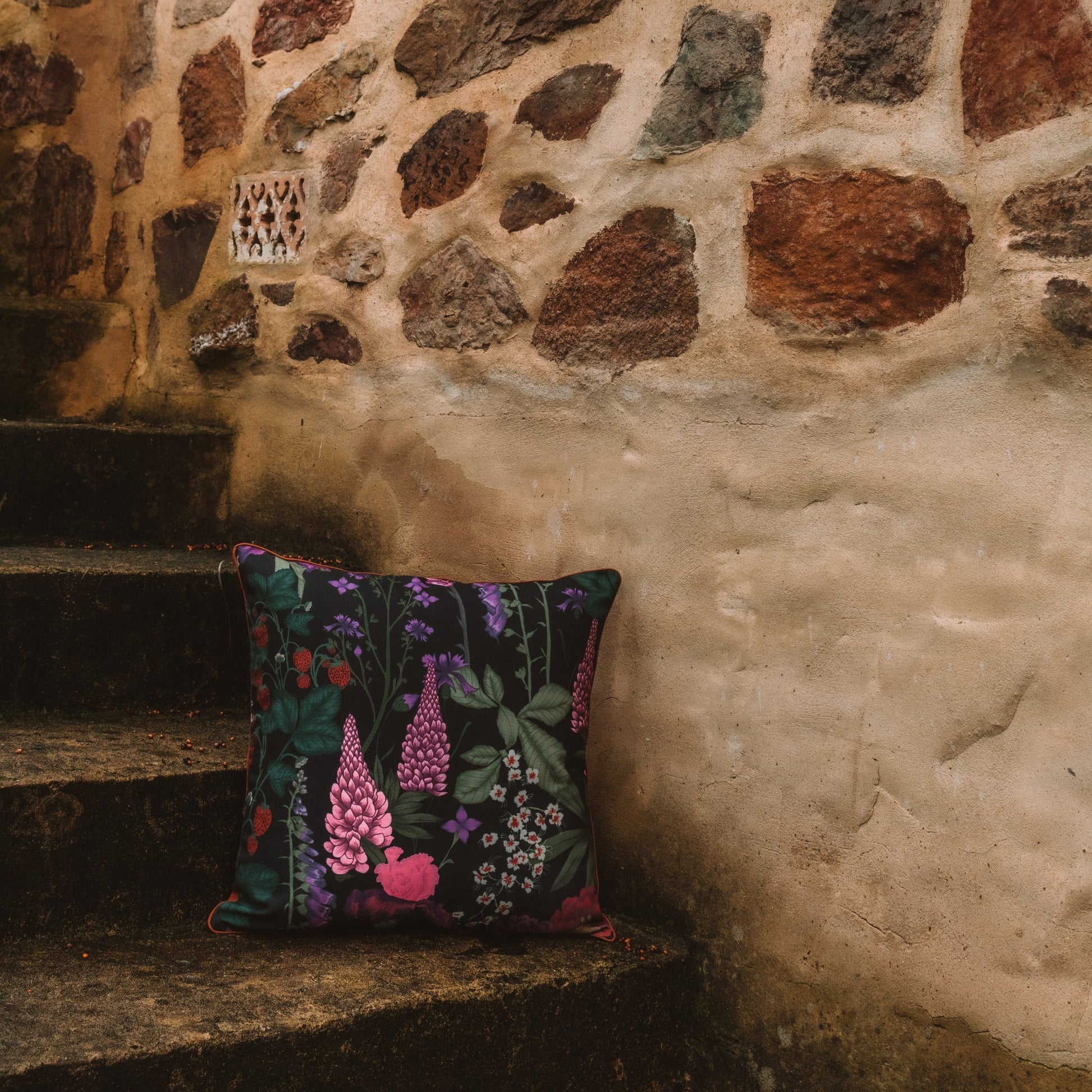 Inspired by the whimsical charm of English garden blooms, the Flourish Clover Cushion is made from durable, eco-friendly fabric made from recycled PET bottles and backed with our signature waterproof brown base. Intricate hand-drawn details in velvety, shadowy foliage to bold, life-filled florals.