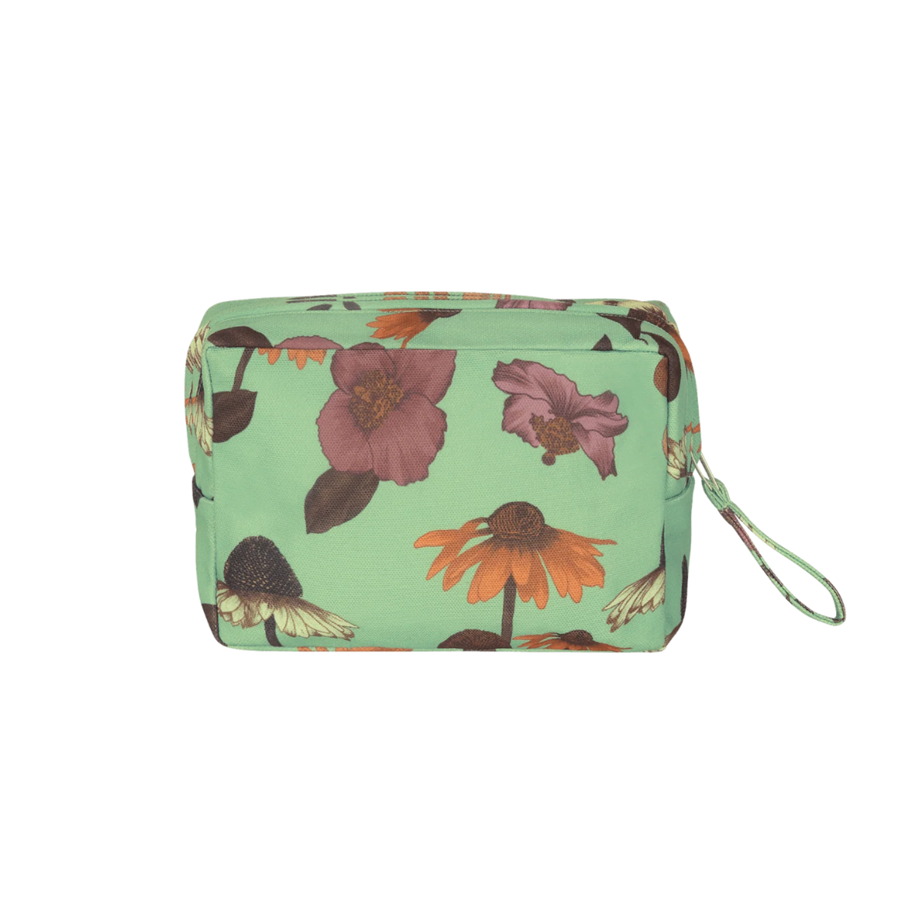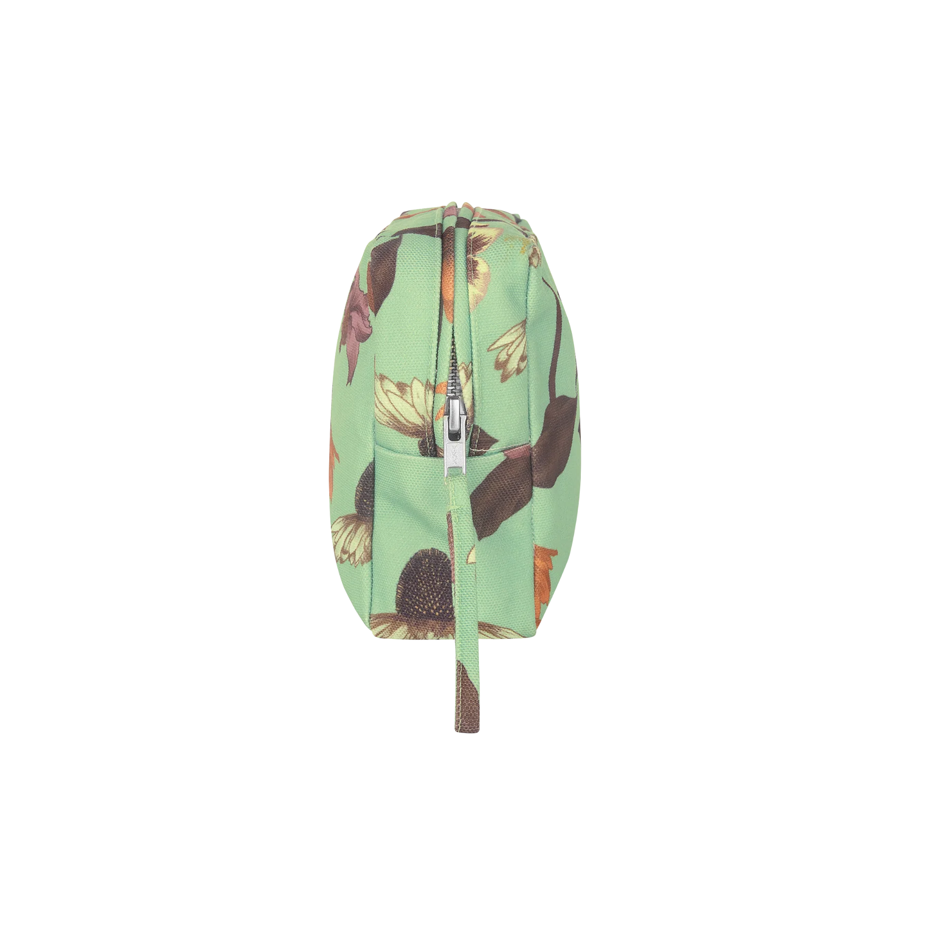 Made from 100% recycled PET (plastic bottles) its water resistant, fade proof and super durable. Comes with a lining inside the zip bag and would also be great for a make up bag.