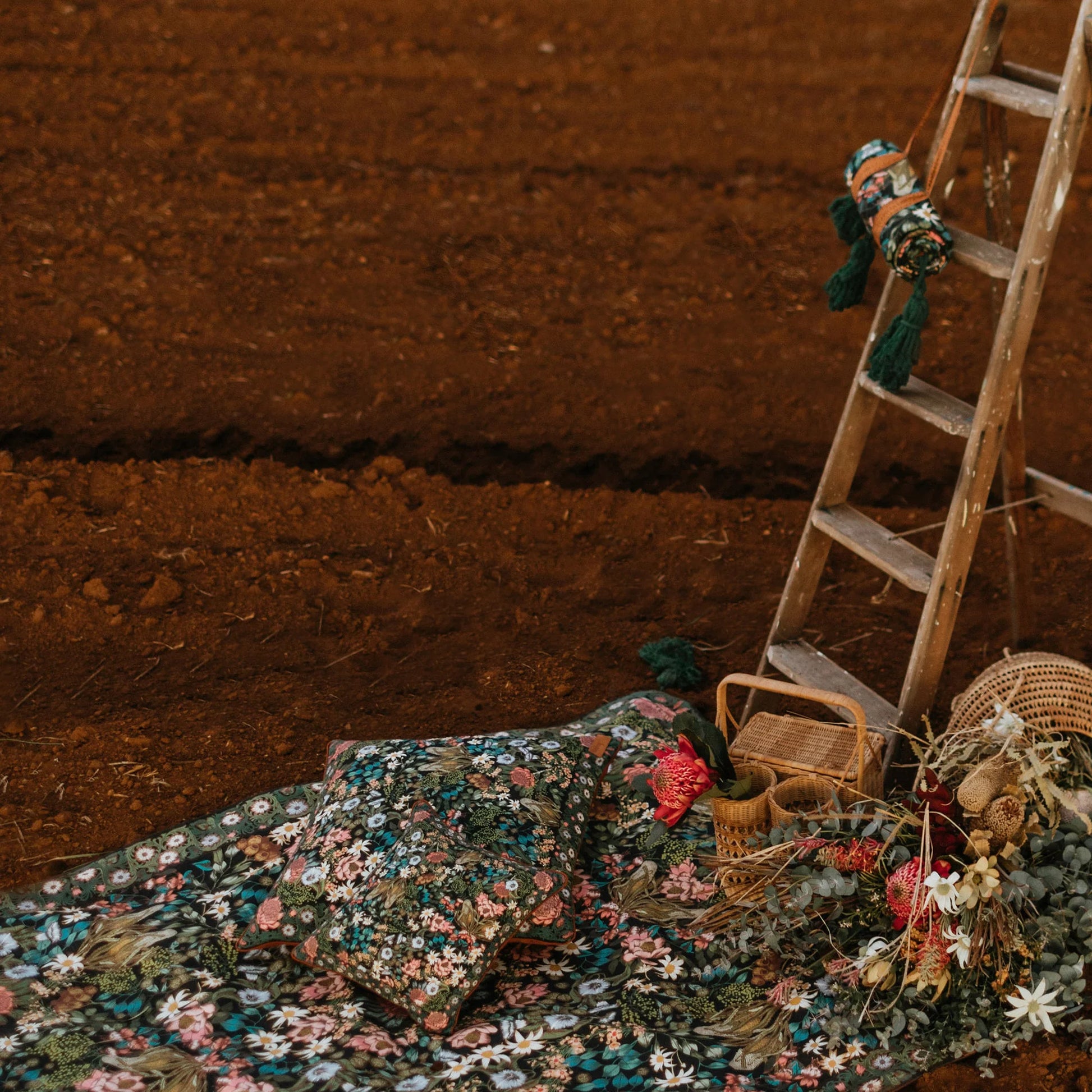 Wandering Folks best selling Native Wildflower print is hand illustrated by the founder Sharnee Thorpe. Printed on a durable cotton canvas with a protective water resistant base, so you can style your picnic set up any way you like!