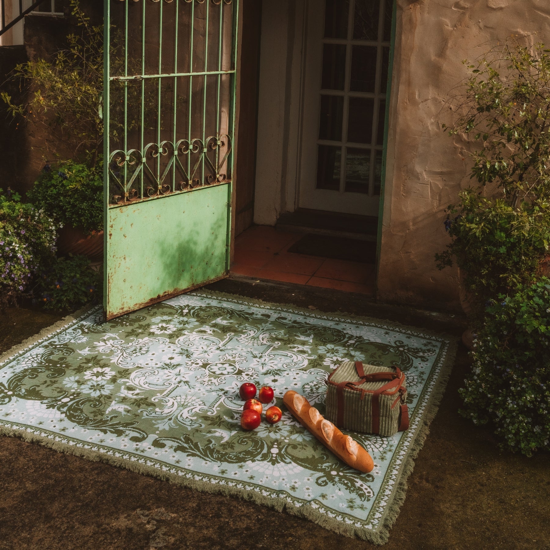 Wandering Folk's Ornate Floral Throw is a new dreamy green Fern colour to their Ornate ginger and Ornate Rosè, long time favourites of the Wandering Folk community.