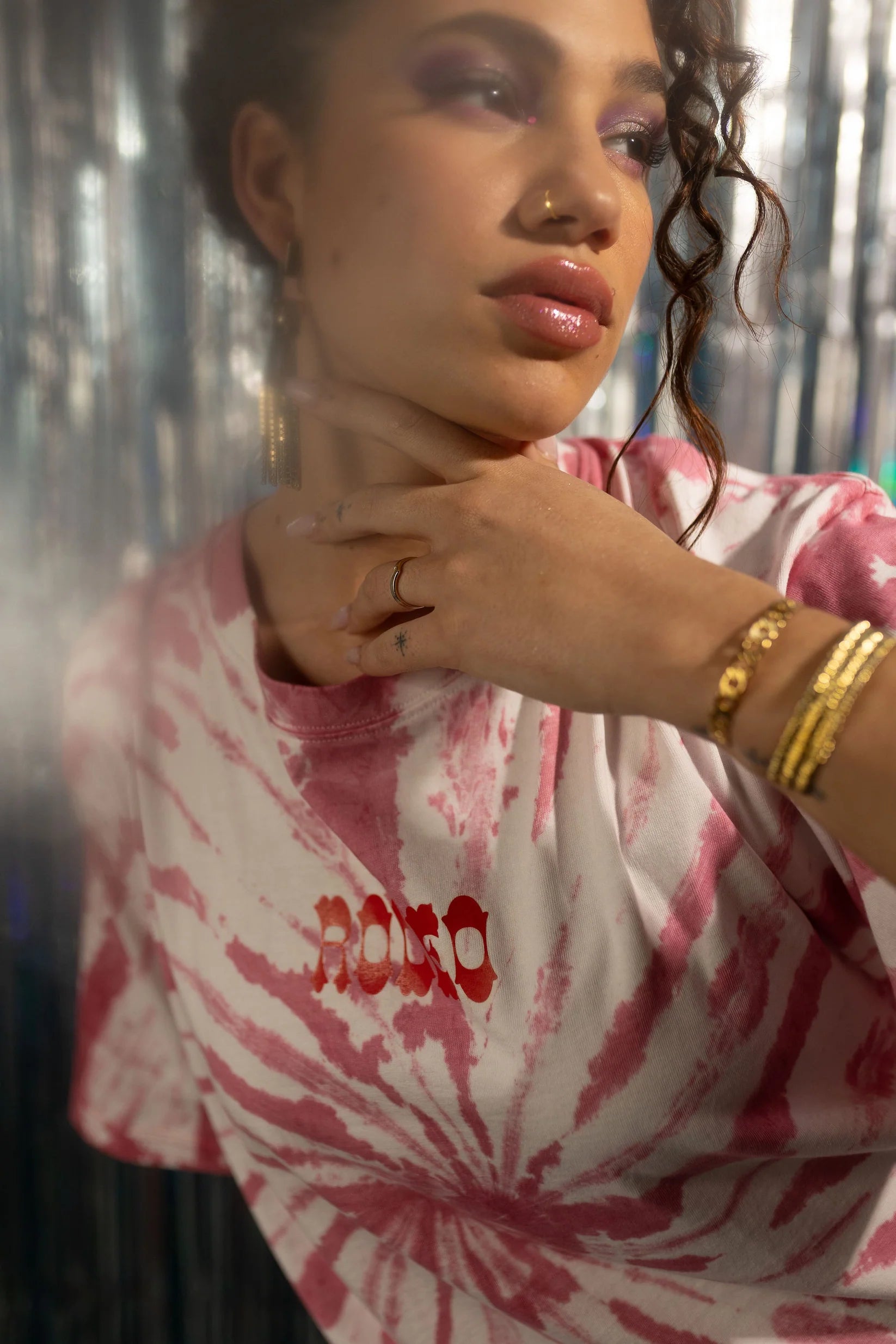 100% Cotton Oversized tie dyed thick cotton t-shirt with red "RODEO" text print on front. Inspired by 1970's festival with an slogan to nod to my forever style inspiration Dolly Parton and western style.