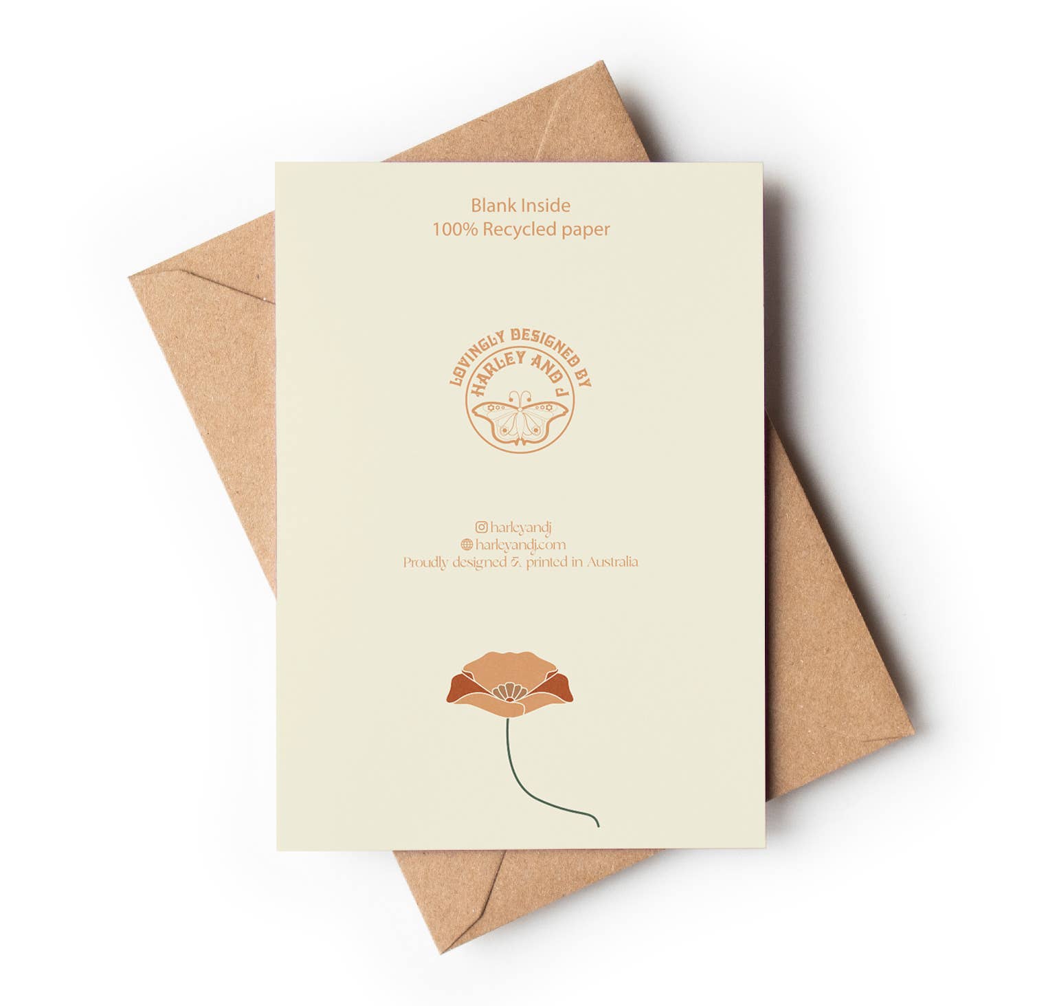 All cards at Harley and J are designed and printed in Australia on 100% recycled paper, each card comes with a kraft envelope and in its own clear cello bag.