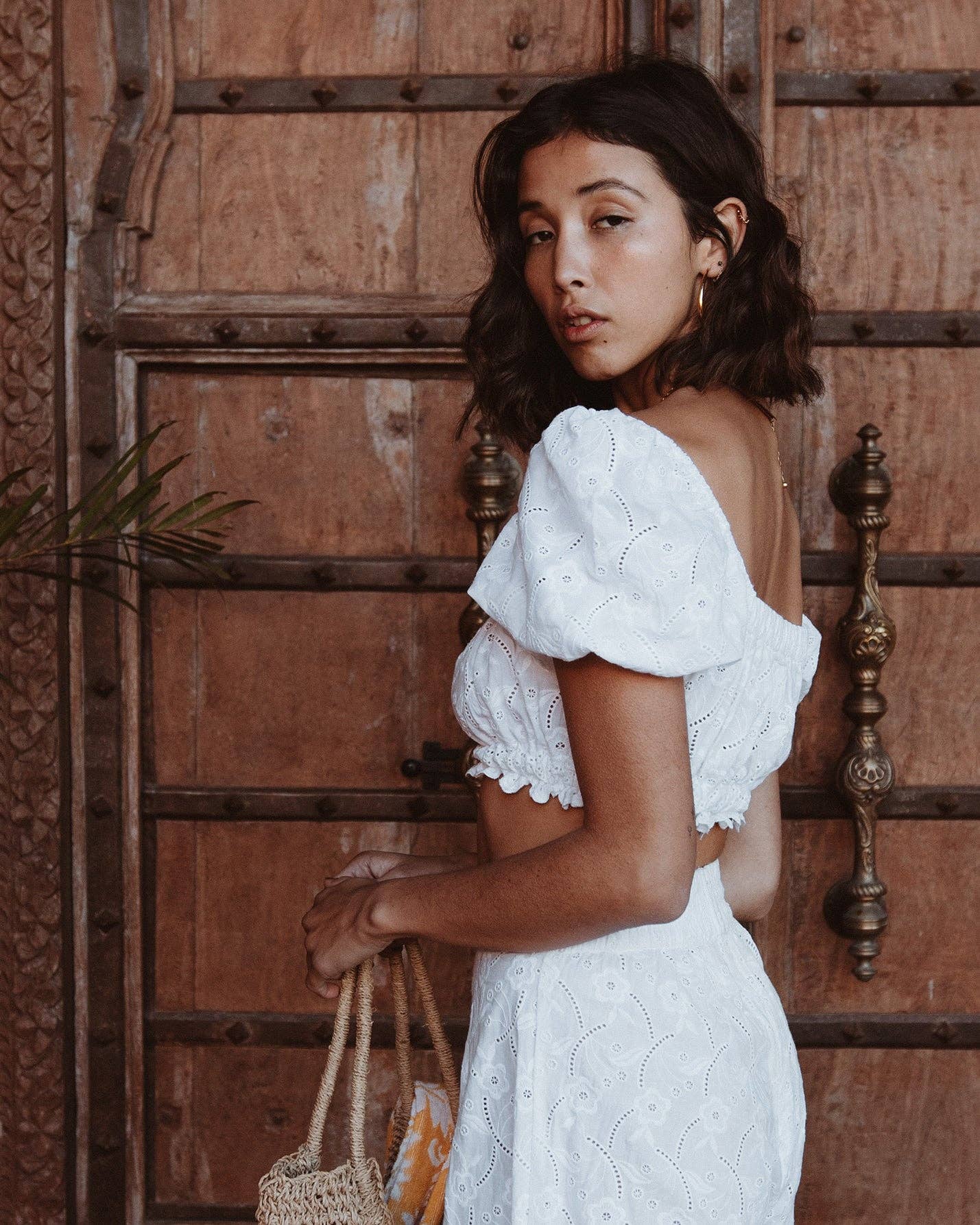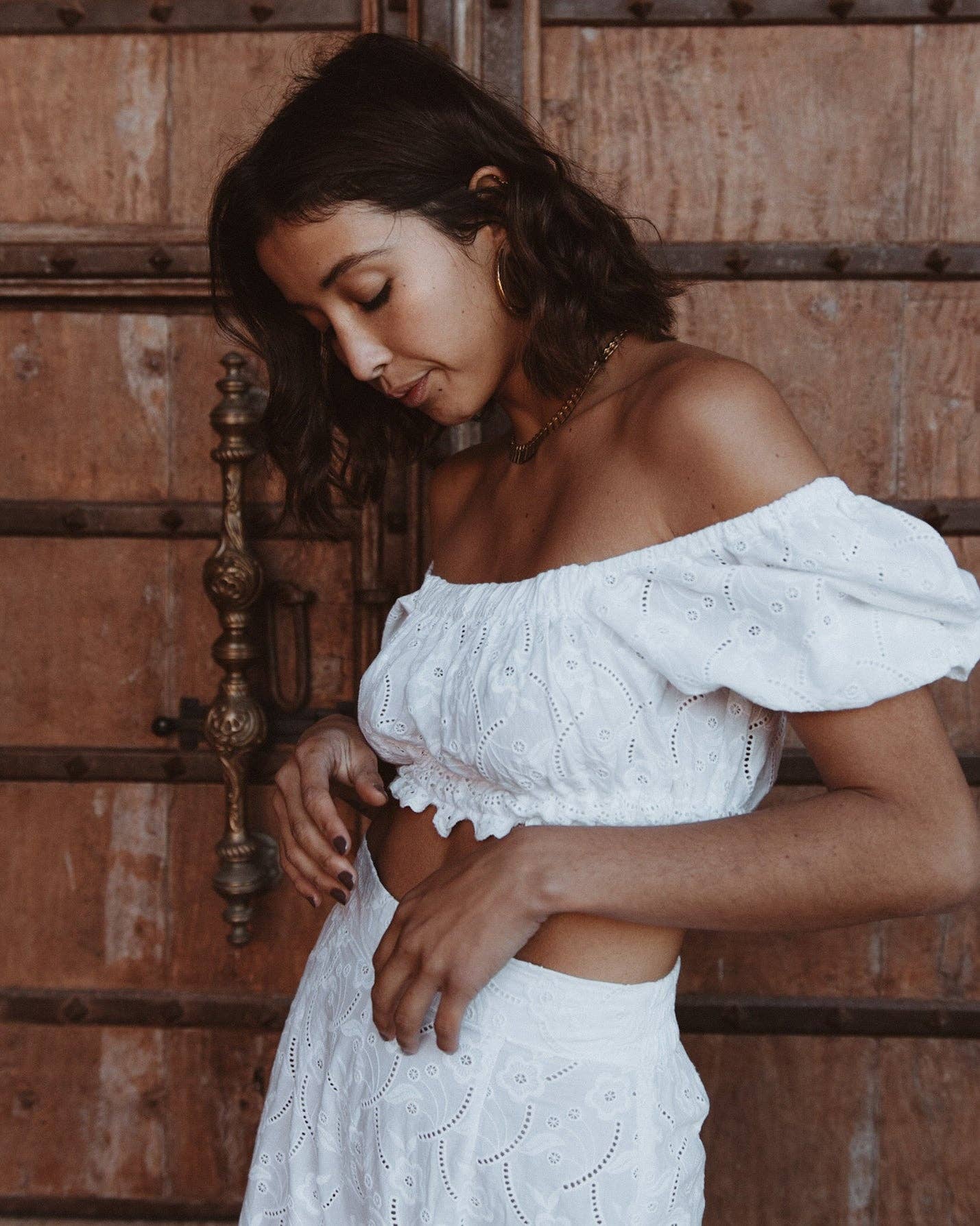 Our Darling Crop is simply divine. It features beautiful puff sleeve details & an elasticated neckline and under bust.