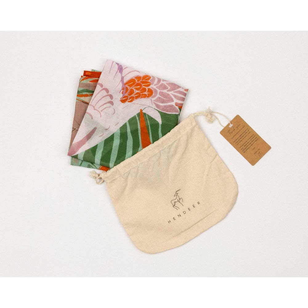 ‘Windchimes” design is a blend of traditional elegance and contemporary playfulness. It evokes a sense of inner freedom and peace with its graceful motifs and Asian Crane Patterns. Drenched in the shades of seaweed green, blush pink, and tangerine, it will perfectly dance and flow with you on a sunny day.